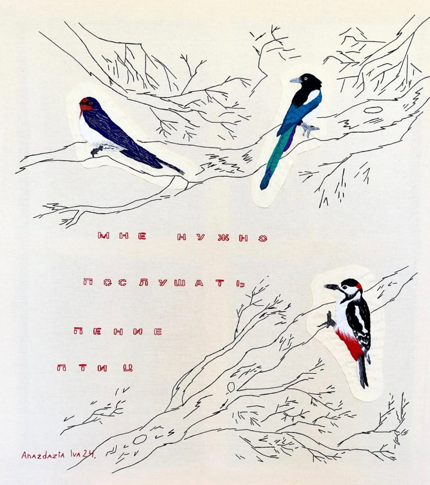 А в материалах я очень люблю использовать ткани моей бабушки. Всю жизнь она собирала обрезки разного текстиля, а в наследство мне досталось множество чистейшей белой больничной ткани. Когда моя бабушка работала в санатории, медсестрам отдавали много чистого белого постельного белья. Она и забирала. А теперь на нем вышиваю. Для меня это ткани с историей.