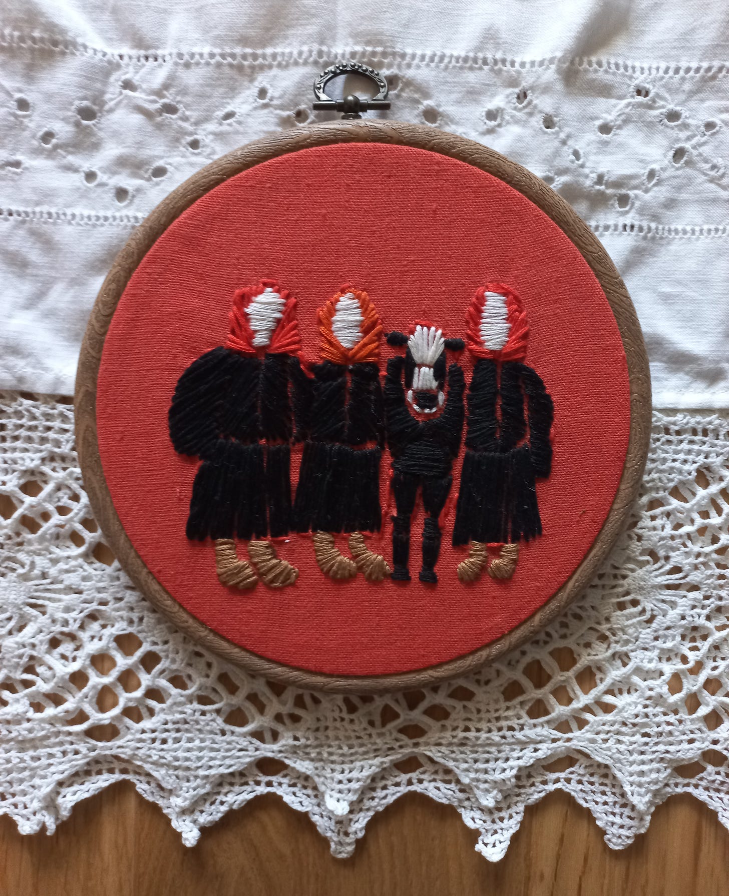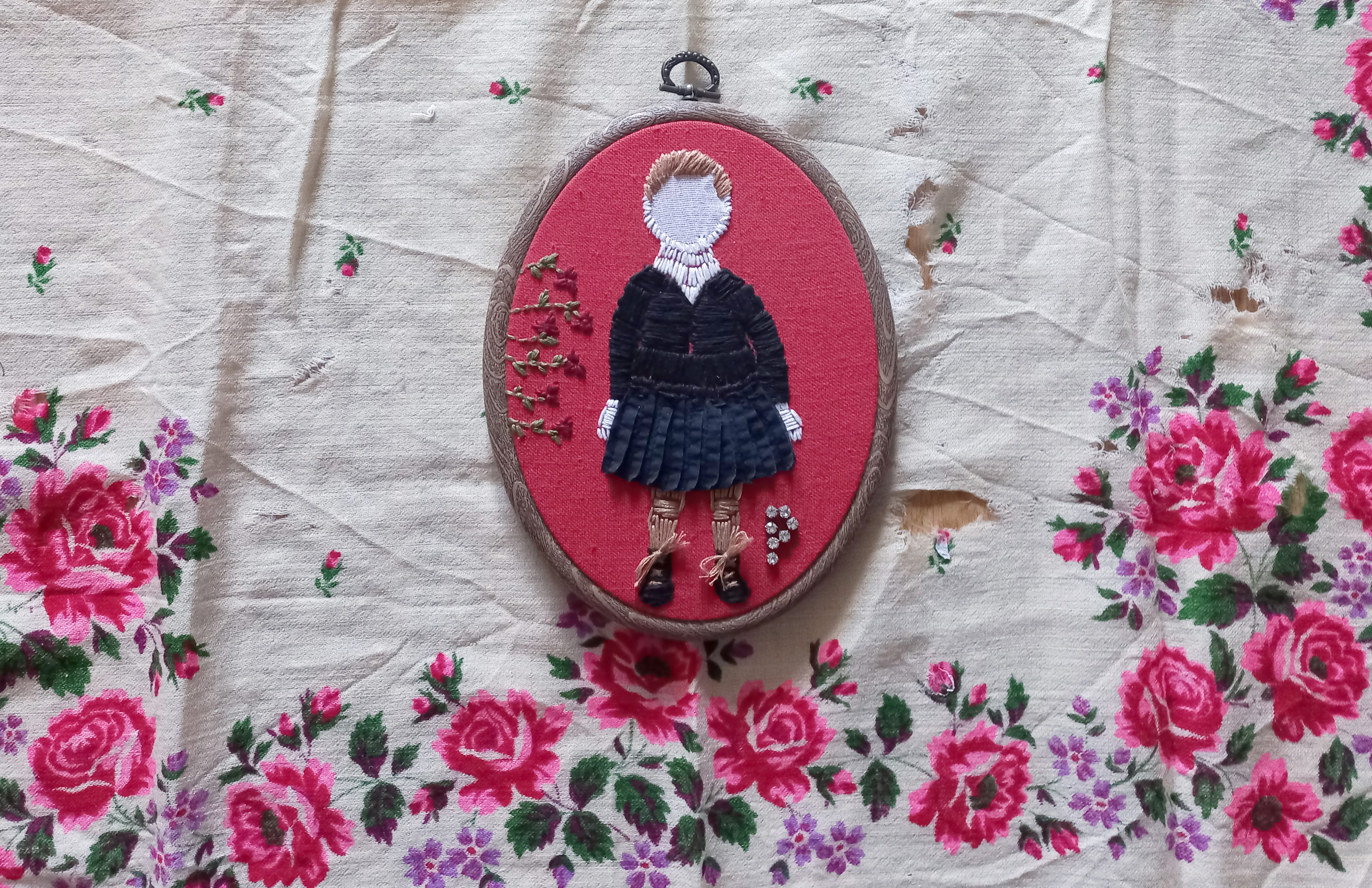—> Самый любимый мой проект — это мой вышитый семейный архив, мои текстильные бабульки, мой иконостас. Вышивать я начала плотно около трёх лет назад, когда заканчивала аспирантуру. Я очень устала от академической деятельности и захотела заняться чем-то рукотворным, попробовать разные техники и медиумы. Я пошла на курс в Цех книги, и там куратор дала нам разминочное задание: делать наброски разными материалами, в том числе текстильными, на основе семейных фотографий. И я обнаружила, что у меня вообще нет старинных фотографий семьи. Тогда я вышила фотографию чужих бабушек с коровой, и понеслось :)