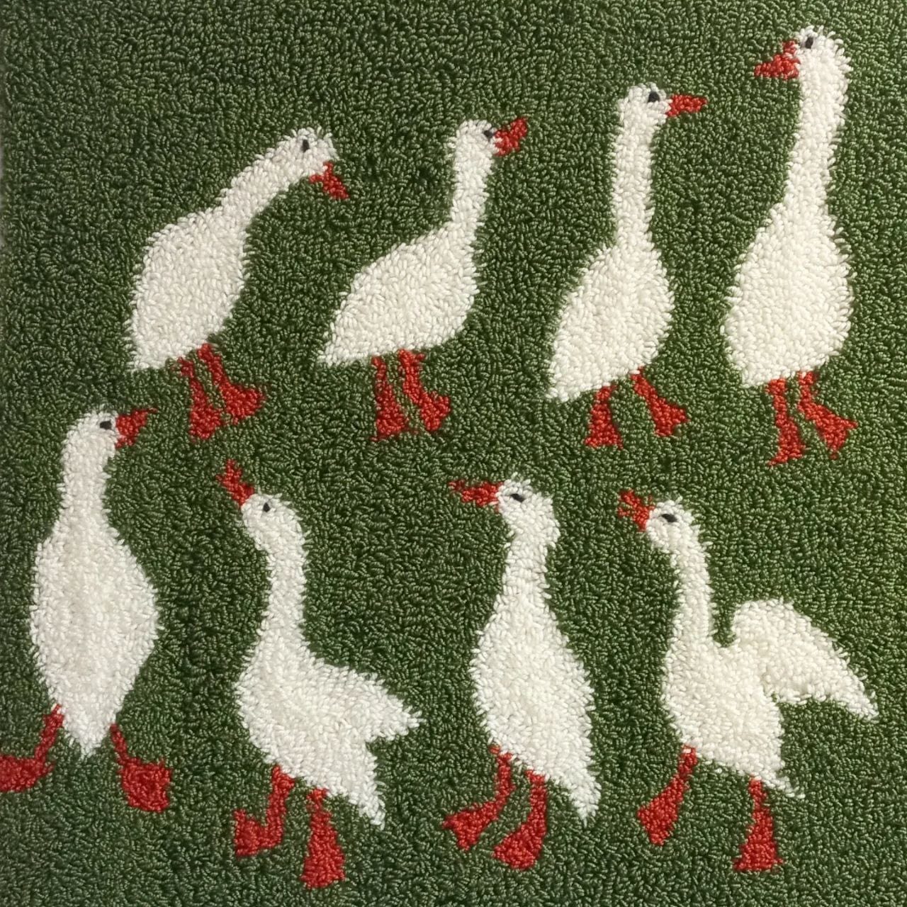 Наверное, год назад я (на этот раз уже с сыном — он, оказывается, был в курсе этой техники из тиктоков) обновила воспоминания об этой технике и принялась за ковровую вышивку на основе своих фотографий, сделанных в разных деревнях моих предков (по которым мы временами катаемся семьёй).