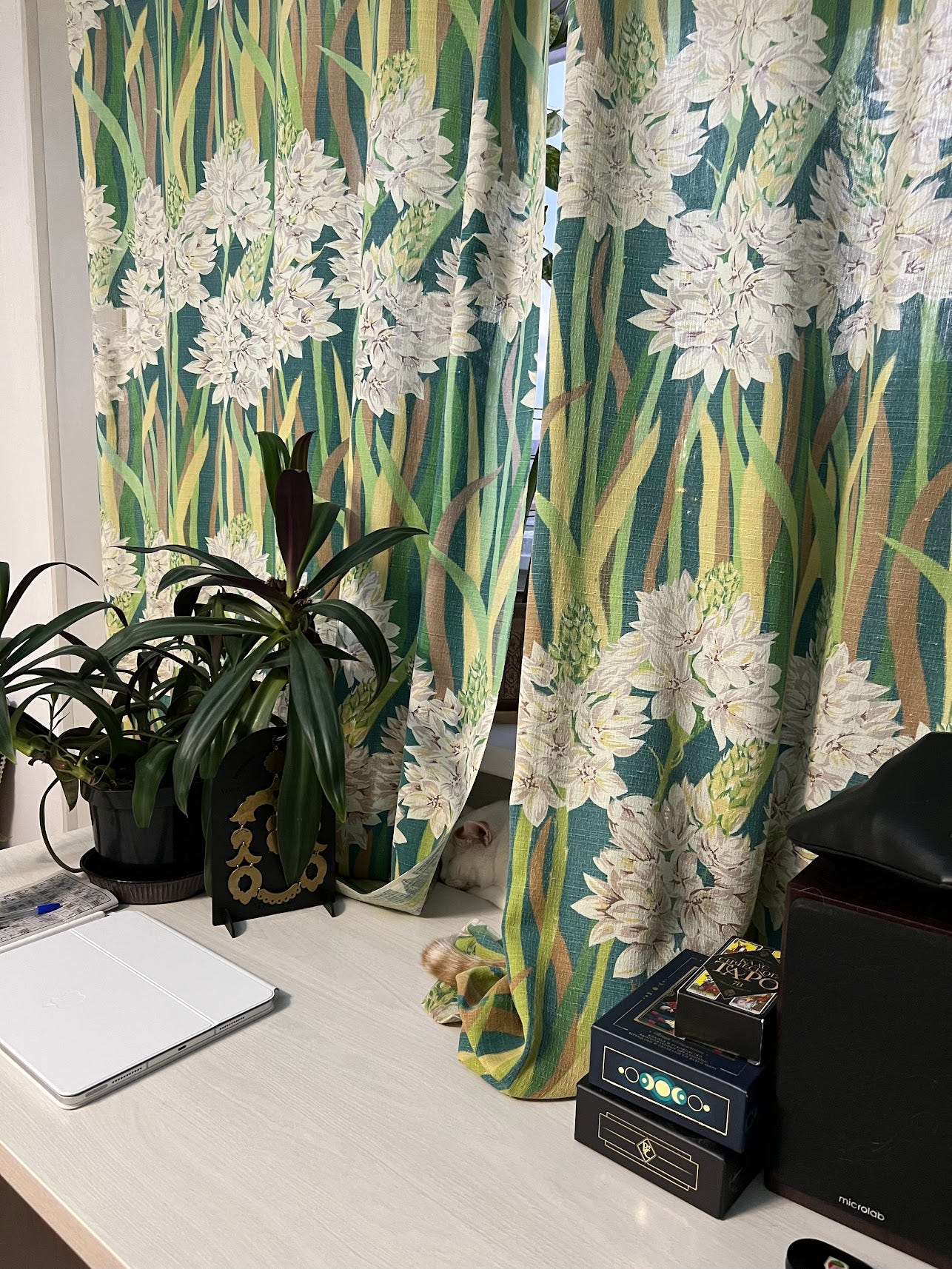 А ещё у нас в квартире висят шторы, которые старше меня лет на 10. Они символизируют для меня дом. Сколько себя помню — моя семья постоянно меняла место жительства, потому что не имела своего. Квартиры бесконечно сменяли друг друга, менялся вид из окна, интерьер, атмосфера, но неизменным было одно — эти шторы. Я всегда знала, там где эти шторы — мой дом. Потом они перешли мне по наследству и теперь висят в том месте, которое я по-настоящему могу назвать своим домом. Со временем они потеряли свой яркий цвет, обросли шрамами и дырками, но не потеряли своей былой красоты. Прямо как зонтик Бараша из «Смешариков».