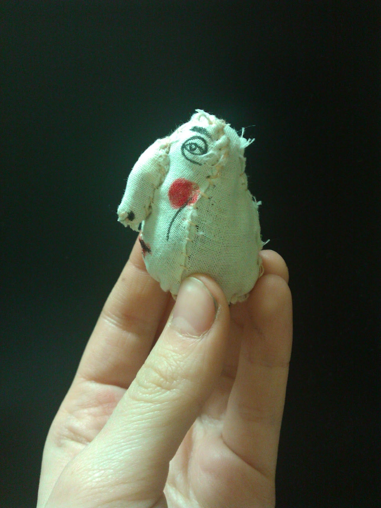 Это было начало 2015 года, январь или февраль. Я училась на худграфе на третьем курсе, жила в студенческом общежитии. В то время я много экспериментировала с материалами, мне было мало того, что я могла получить в институте. Однажды вечером я пришла в свою комнату и увидела на своей кровати свёрток с тканью. У кого-то из моих соседок в тот день было задание по созданию народной куклы, которую не шьют, а скручивают. И в общем остатки ткани от куклы каким-то образом очутились на моей кровати. На столе были разбросаны мои иллюстрации, с листов на меня смотрели белые лица с красными щеками — я почему-то часто рисовала такой образ. Ткань, оставленная соседкой, тоже была белого цвета, в голове промелькнула мысль «а что если?». Спустя полчаса я держала в руках маленькую тряпичную голову и рисовала ей красные круги на щеках. В тот момент внутри что-то зазвенело — из текстиля тоже можно создавать искусство. Я это открыла для себя будучи уверенной, что так никто не делал.