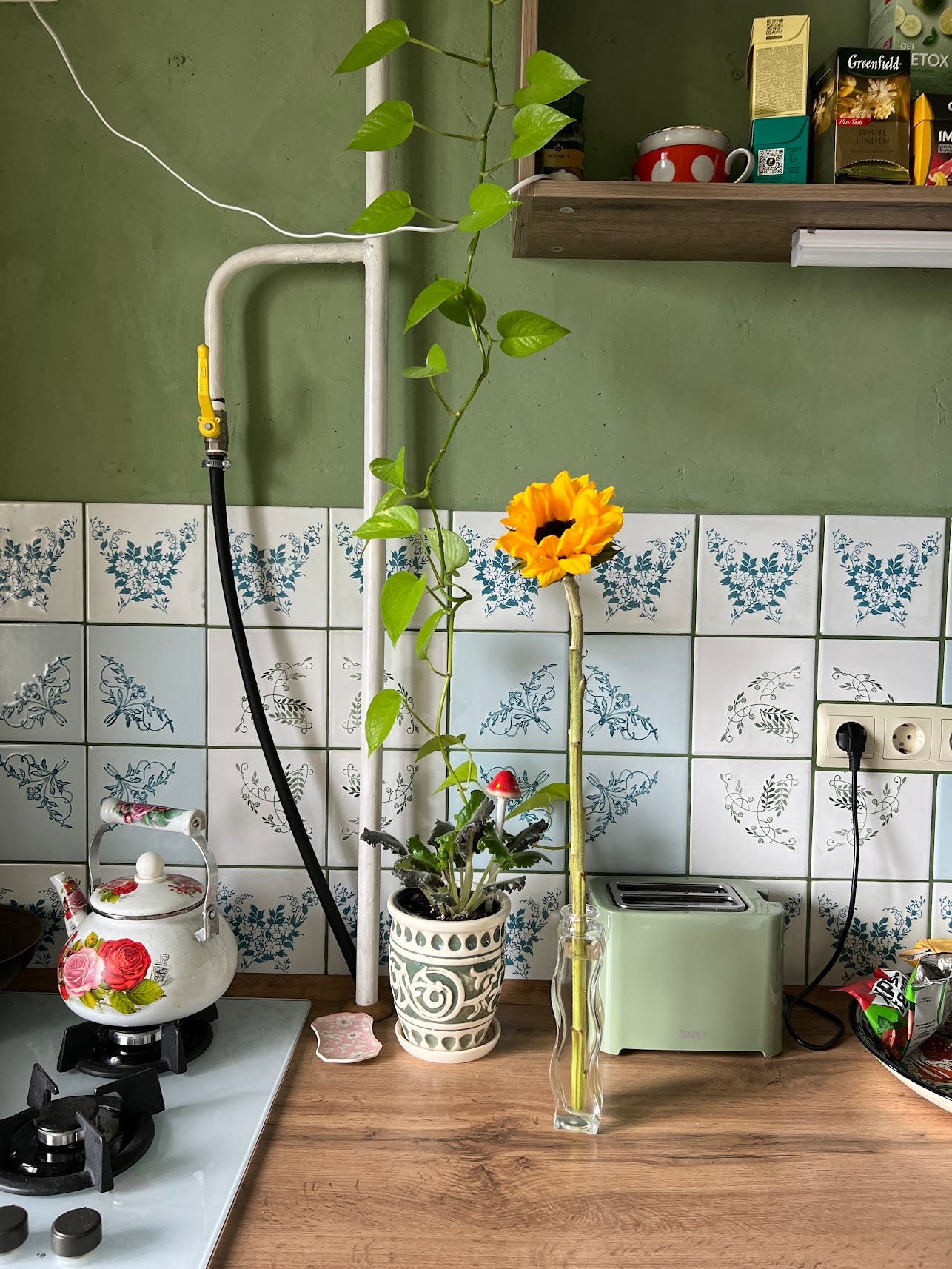 —> Я люблю свою квартиру, несмотря на то, что в ней много недостатков. Старый линолеум, рваные обои, как-то по-детски покрашенные мной и мужем стены — это моя квартира. Но в то же время, здесь много красивого. Я люблю нашу плитку на кухне, она досталась нам от бабушки мужа, которая хранила её больше 50-ти лет.
