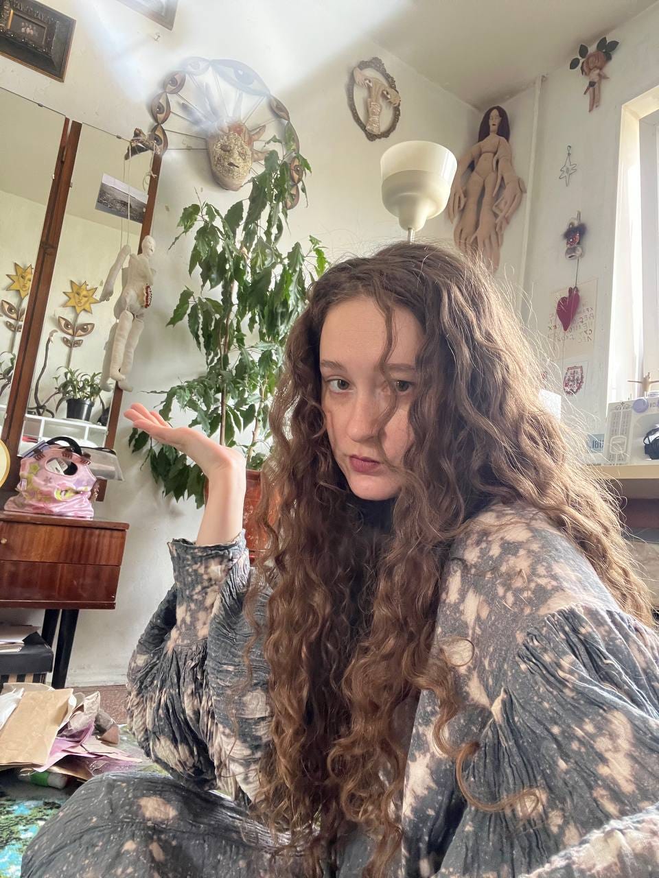 —>Из одежды не могу ничего назвать, кроме своего пальто. Купила его в тагильском сэконде, думаю оно шикарное. Больше из одежды нечего выделить, потому что я сейчас нахожусь в поиске новых компромиссов между удобством и красотой. Мне кажется большинство вещей, созданный для женщин — это предметы пыток. Взять хотя бы колготки, кто вообще это придумал? Это же максимально неудобно, так же, как и лифчики. Но если из колготок хотя бы можно сшить скульптуру (чем я собственно и занимаюсь), то лифчики на кой нужны, я не понимаю. В общем мой любимый предмет одежды — это что-то мягкое, комфортное и не давящее ни на какие части тела.