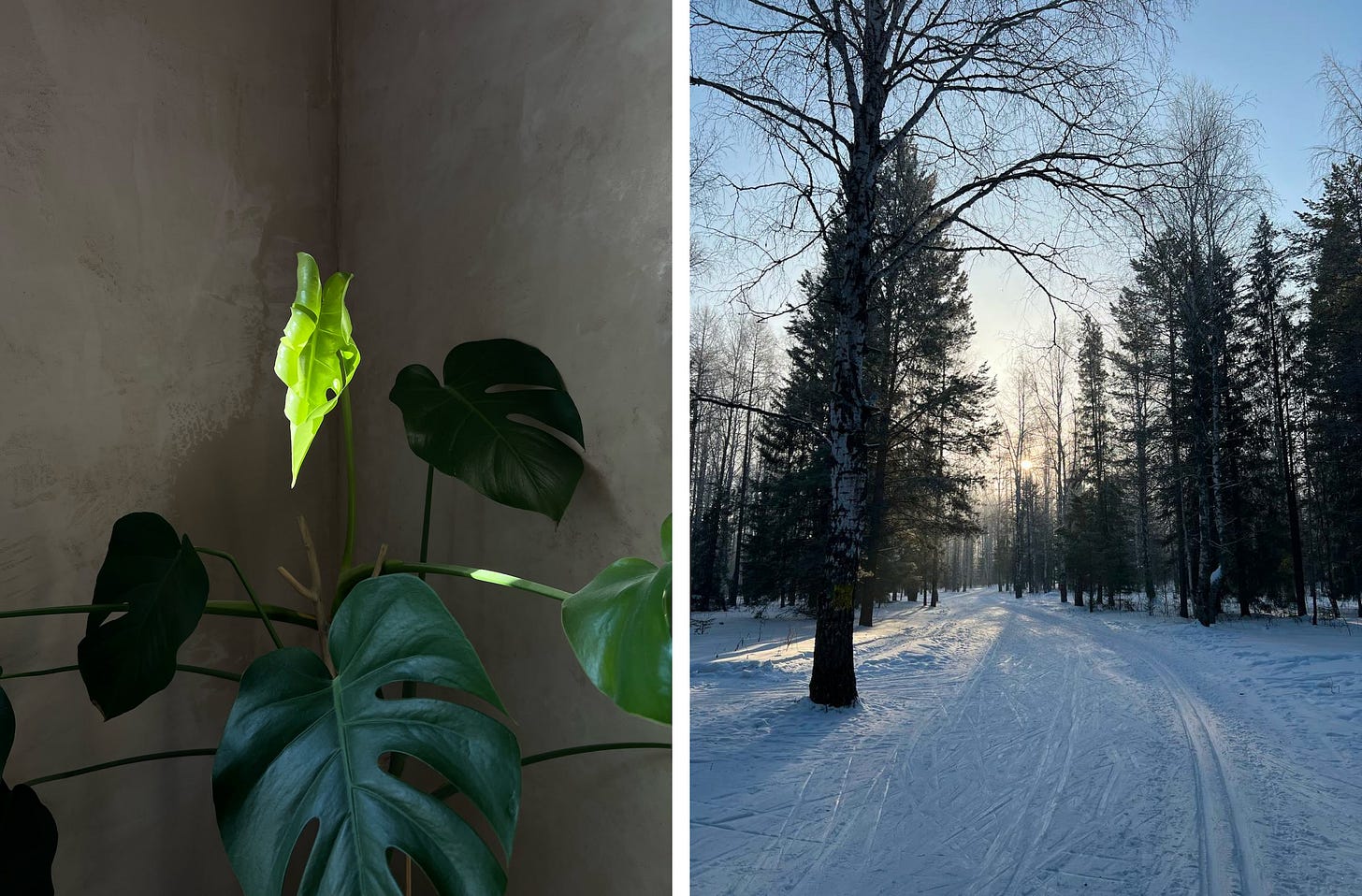 —> Чаще всего это самые обычные вещи, например, когда вырастает новый лист у цветка, а я уже думала, что растение умирает. Или когда я еду в лес кататься на лыжах, а вместо этого останавливаюсь через каждые пять метров и фотографирую каждый куст или дерево, потому что красиво. Когда после лыжни иду в кафе есть горячие пирожки с капустой и кофе 3в1.